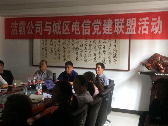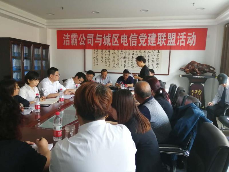 5月27日下午,潔霸公司黨支部與城區(qū)電信東城西城聯(lián)合黨支部開展了黨建聯(lián)盟活動(dòng)。首先雙方對公司的概況以及黨支部成員的構(gòu)成做了詳細(xì)的介紹?偨(jīng)理程晉軍及支部書記李山虎對城區(qū)電信公司黨支部成員的到來表示了熱烈的歡迎。