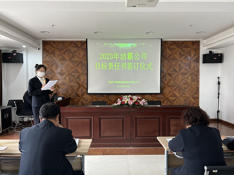 為進一步提升目標責任主體考核,壓實目標責任,強化履職擔當,3月24日下午,晉城市潔霸清潔服務股份有限公司2023年目標責任書簽訂儀式在公司黨群活動中心舉行。公司管理層、各單位、部門經(jīng)理、主管及文員參加會議。
